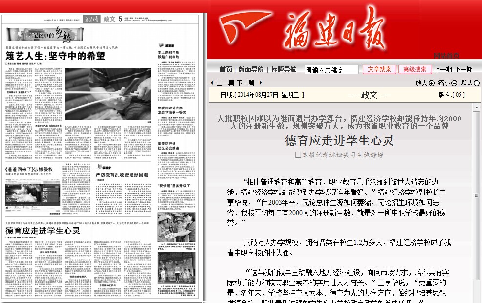 “相比普通教育和高等教育,职业教育几乎沦落到被世人遗忘的边缘,福建经济学校却能做到办学状况连年看好。”福建经济学校副校长兰享华说,“自2003年来,无论总体生源如何萎缩,无论招生环境如何恶劣,我校平均每年有2000人的注册新生数,就是对一所中职学校最好的褒誉。”