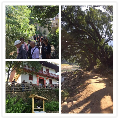 当天的行程是参观春光村、嵩口古镇。大家早早的乘车出发,先到达春光村。这是个美丽的小村庄,那一排江边大榕树的倾城之姿,一幅唯美的不输云水谣的风景,若用一句诗词来描绘这春日之美,那么“日出江花红胜火,春来江水绿如蓝”应该是最为贴切的了。老同志们沿途拍照、眺望,感受村庄的宁静和美丽。第二站前往嵩口古镇,该镇因拥有100多座明清古建筑以及宋朝著名词人张元幹等历史名人,于2008年被住建部和国家文物局列为第四批中国历史文化名镇名录。近期新建的镇东头的仿古牌坊、镇中心的张元幹塑像、古镇民俗博物馆以及沿大樟溪南岸的溪边公园,预示着嵩口镇要以此为契机打造古镇旅游牌。尽管我们是以休闲为目的,但多少还是冲着古民居而来的。