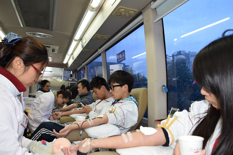 参加献血的老师和学生们按照严格的献血程序,在志愿者的引导下依次填写表格、检测血液、登上献血车献血,一切工作都在有条不紊地进行着,现场的气氛轻松愉快,大多数师生在谈笑中完成了无偿献血的光荣之举。副校长、工会主席戴健斌同志以身作则,带头加入到献血队伍中来,用实际行动回答了无偿献血有益健康。师生们不仅用自身的热血汇集成爱的暖流,驱散了生命的寒冬,用实际行动积极宣传了无偿献血的重要意义,同时也唤起了我校师生对社会强烈的责任心与道德感,为我校创建全国文明单位工作做出了积极的贡献。
